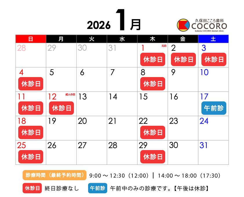 また、1月17日(土)は午後の診療を休診とさせていただきます。午前中は通常通り診療いたします。